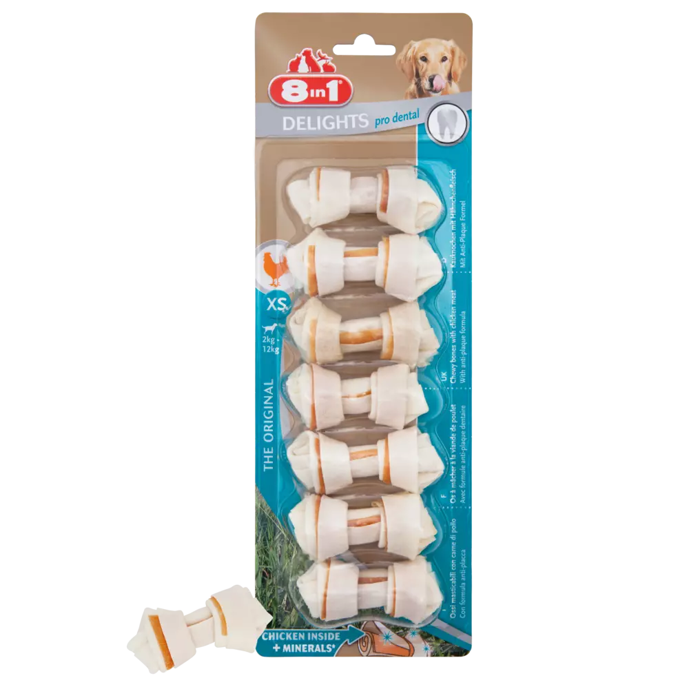 8in1 Delights Pro Dental kości do żucia o smaku kurczaka dla czystych zębów psów ras ozdobnych