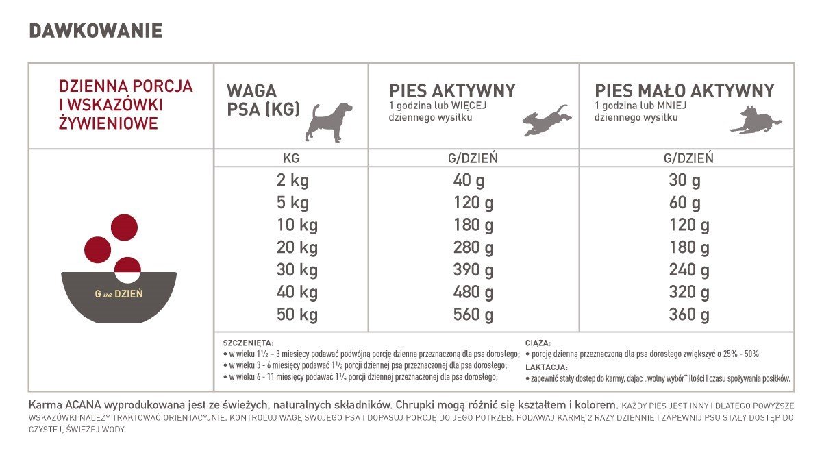 Sposób karmienia psa karmą Acana Classic Red: