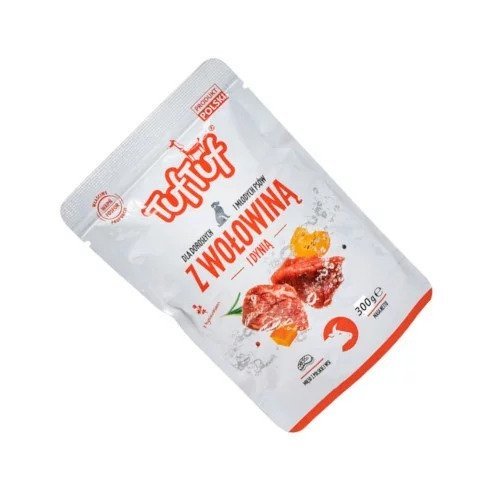 Mielonka wołowina z dynią to karma, którą można podawać wszystkim psom, bez względu na rasę czy wielkość. Saszetka jest bardzo wygodną formą żywienia psów. Sprawdzi się na co dzień w domu, ale także w podróży czy w terenie. Opakowanie łatwo się otwiera, a zawartość szybko znika z miski. Karma TufTuf to wysoka jakość w ekonomicznym wydaniu. Przystępna cena sprawia, że saszetki dla psów rozchodzą się jak ciepłe bułeczki.