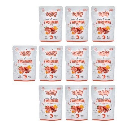 Saszetka Tuf Tuf dedykowana jest wszystkim dorosłym psom, bez względu na wielkość czy rasę. Ten produkt stanowi pełnoporcjową karmę dla psa, co oznacza, że zaspokoi wszystkie podstawowe potrzeby żywieniowe zwierzęcia. Po otwarciu szybko przekonasz się, że zawartość jest pyszna, miękka i bardzo aromatyczna.