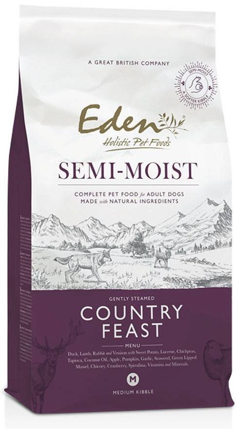 EDEN Półwilgotna Country Feast to doskonała opcja dla psów wszystkich ras i wieku, zapewniająca im smaczny i odżywczy posiłek, który wspiera ich zdrowie każdego dnia.