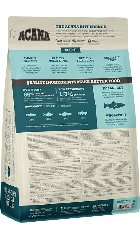 Skład karmy Acana Bountiful Catch dla kotów dorosłych:
