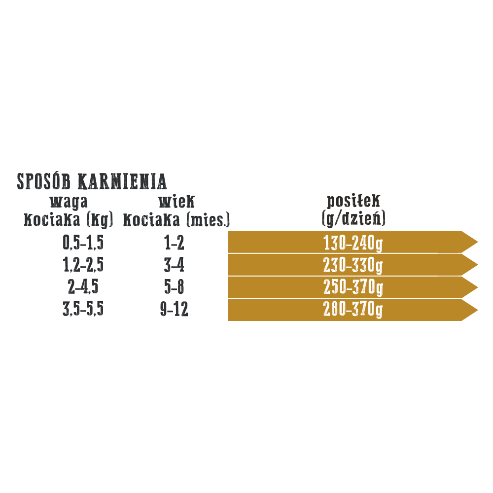 Podane w tabeli wielkości posiłku są orientacyjne. Obserwuj swojego czworonoga i zmniejsz lub zwiększ wielkość posiłku w razie potrzeby.
