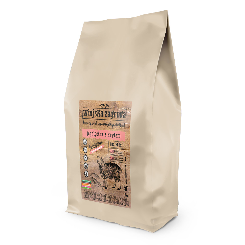 Sucha Karma dla kotów Wiejska Zagroda Jagnięcina z Krylem dostępna w opakowaniach