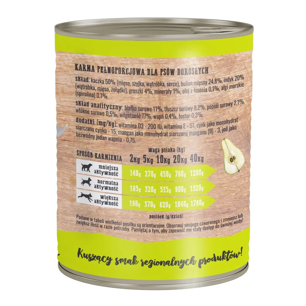 Dawkowanie mokrej karmy Wiejska Zagroda Kaczka z Gruszką: