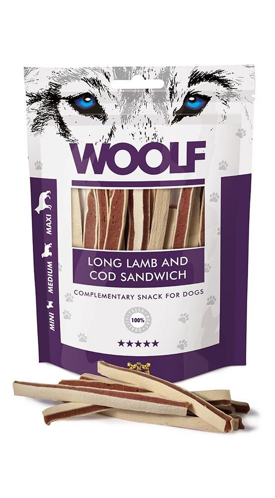 Woolf Przysmak dla Psa – Long Soft Lamb and Cod Sandwich 100g